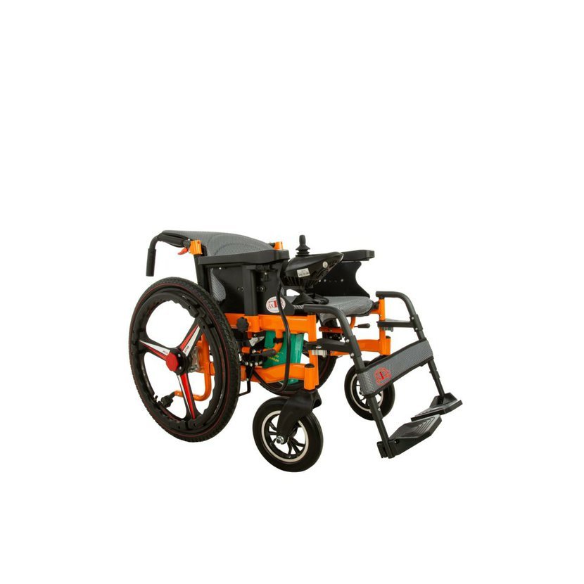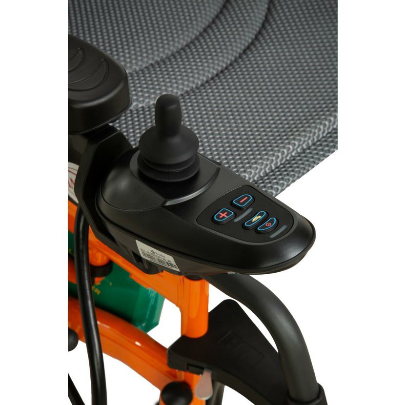 Vozík je vybaven dvojitým elektrickým pohonem 2×250 W, který zajišťuje plynulou a stabilní jízdu. Díky 360° joysticku je ovládání jednoduché a intuitivní i v omezených prostorách.